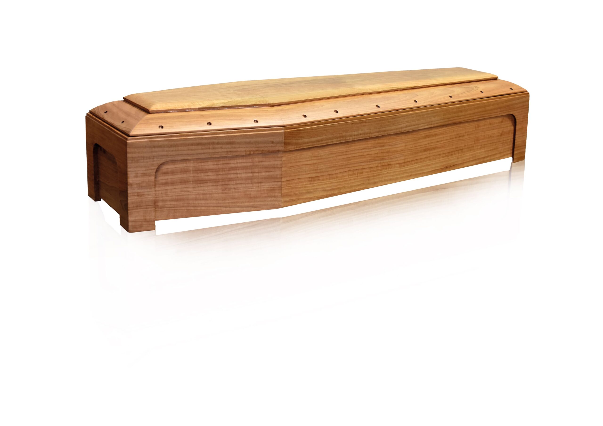 Cofano dalle linee essenziali e contemporanee, realizzato in pregiata Noce Tanganica, selezionata per le sue venature uniformi e calde tonalità.